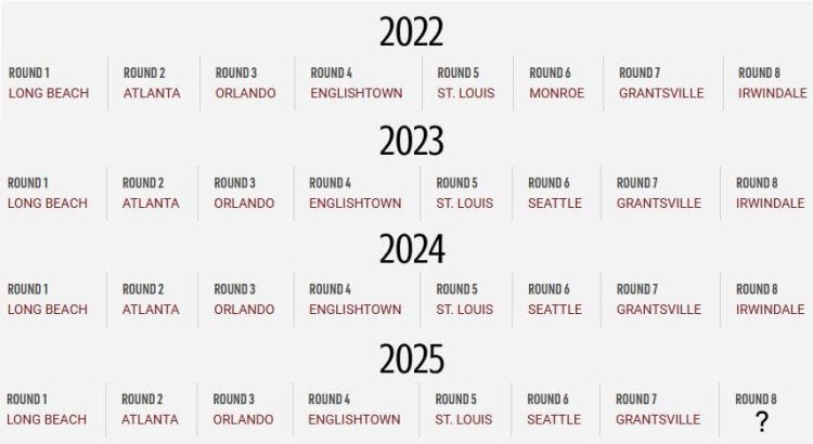 That means we’ve had almost the same schedule since 2022 (minus swapping Monroe for Seattle back in 2023), marking four years of a near-identical calendar.
